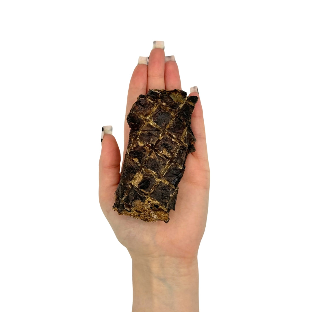Vsak kos je skrbno sušen, da se ohranijo hranilne snovi in aromatičen okus. Priboljšek je popolna kombinacija naravne prehrane, užitka in zdravja vašega štirinožnega prijatelja.