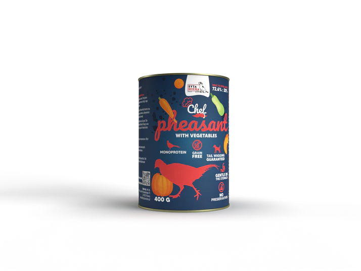 Chef mokra hrana za pse – fazan z zelenjavo je ustvarjen za optimalno zdravje in dobro počutje vašega psa. Gre za monoproteinsko, lahko prebavljivo in dietetično formulo z visoko okusnostjo, ki jo odlikujejo kakovostne sestavine: