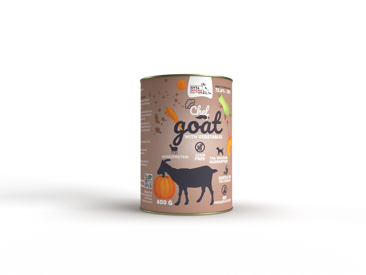 Chef mokra hrana za pse - koza, 400g je izjemna izbira, če iščete hranljiv, okusen in zdrav obrok za vašega psa. Narejena z mislijo na občutljive pse in tiste, ki potrebujejo dietno prehrano, ta formula zagotavlja vse potrebno za ohranjanje vitalnosti in zdravja.