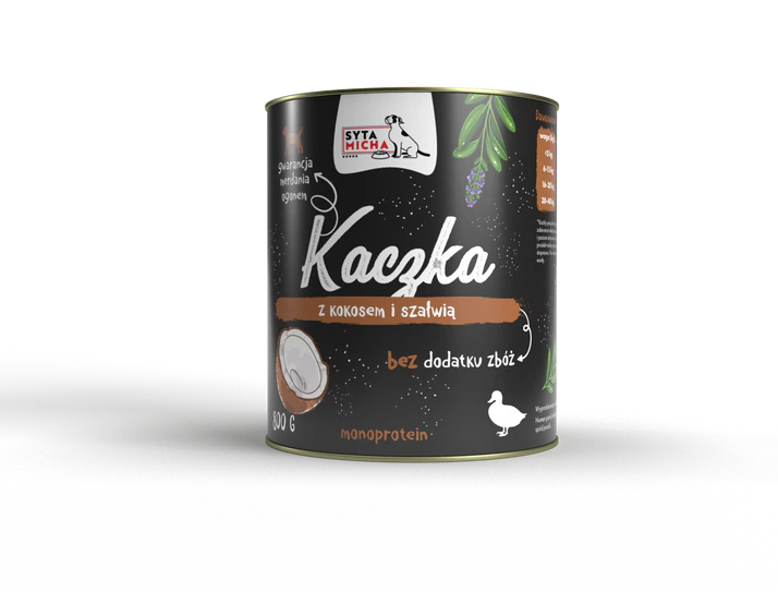 Mokra hrana za pse: Raca s kokosom in žajbljem - ta edinstvena mokra hrana združuje sočnost race, hranljivost kokosa in blagodejne lastnosti žajblja v popolnoma uravnoteženem obroku. Poleg izjemnega okusa, ki bo zadovoljil tudi najzahtevnejše pasje brbončice, naša hrana nudi številne zdravstvene koristi. Ne vsebuje žitaric, umetnih barvil, arom, piščanca, soje ali laktoze, kar jo naredi idealno za pse z občutljivim želodcem ali alergijami. Vsaka sestavina je skrbno izbrana, da prispeva k celovitemu zdravju vašega ljubljenčka, od sijajne dlake do močnega imunskega sistema.