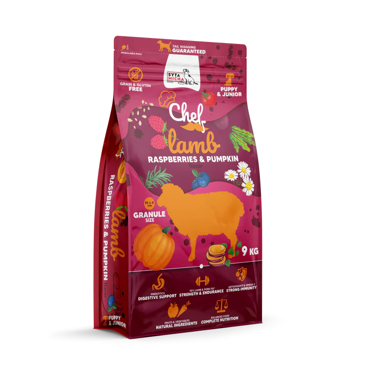 Izberite Chef suho hrano Jagnjetina, malina in buča za zdravo in srečno življenje vašega mladiča!