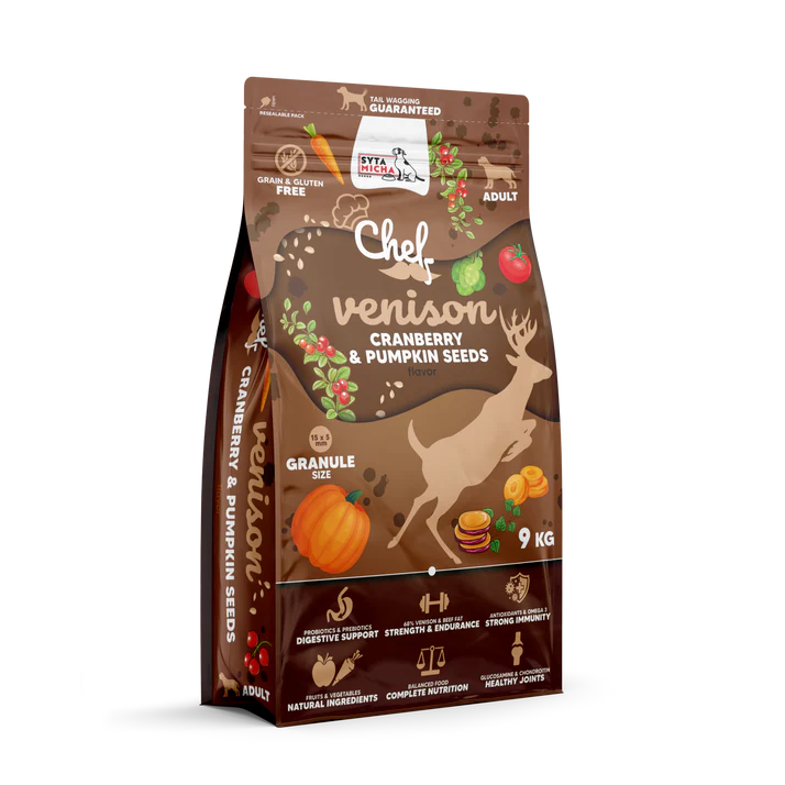 Chef suha hrana za pse s probiotiki - divjačina je popolna prehrana, ki ne le zadovolji apetit vašega ljubljenčka, ampak tudi poskrbi za njegovo zdravje na najvišji ravni.