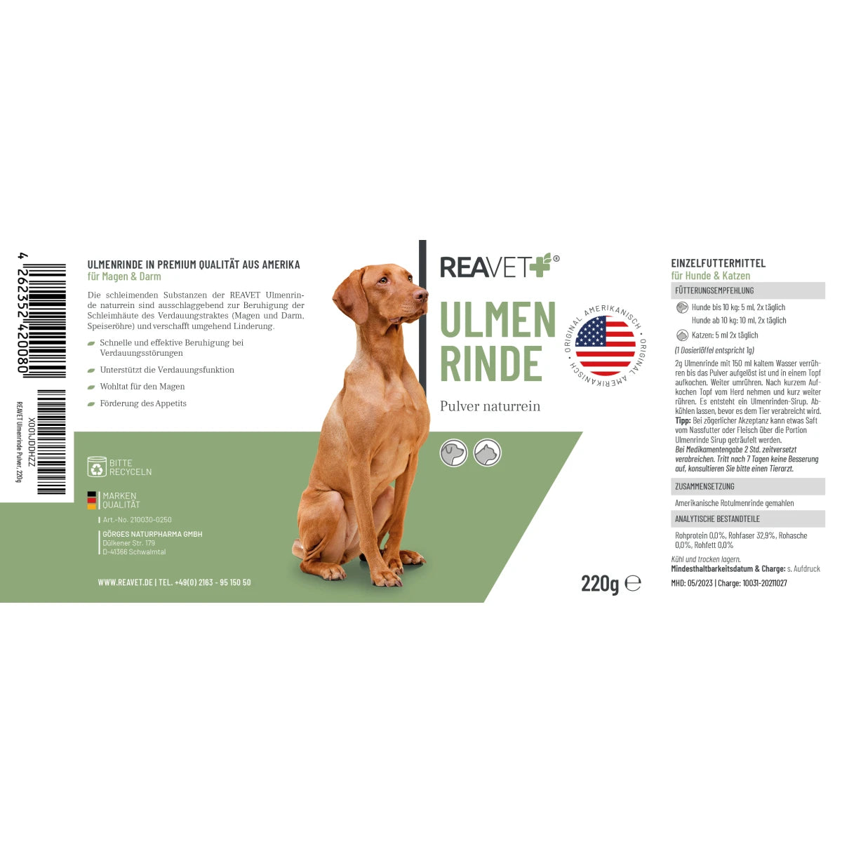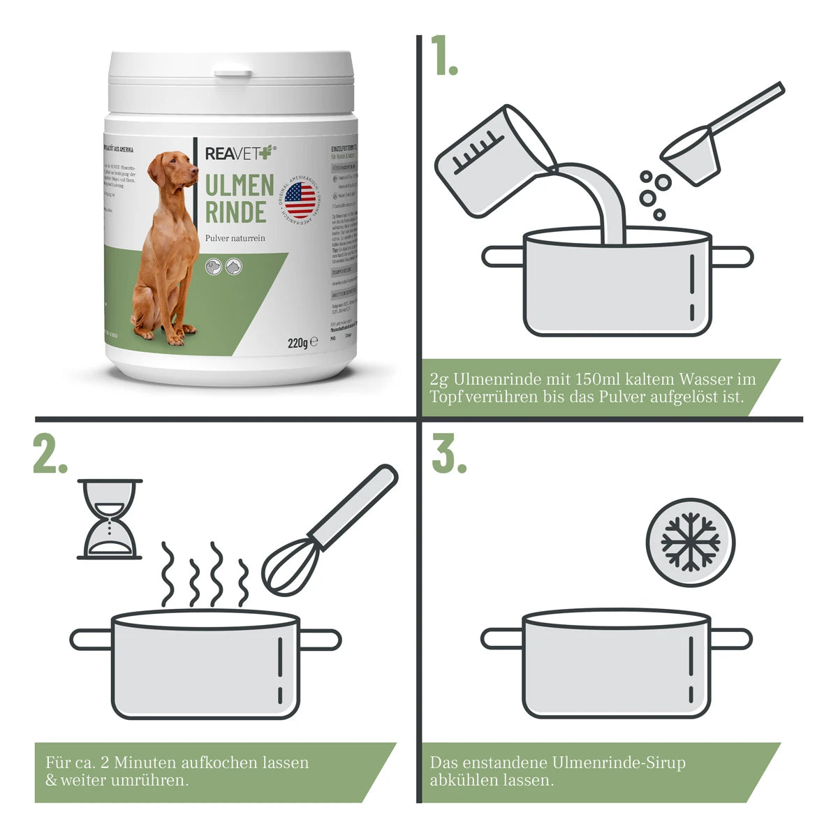 Naravna mešanica iz ameriške ulmove skorje je bogata z dragocenimi tanini, grenkimi snovmi in predvsem sluznimi snovmi, ki ob stiku z vodo tvorijo zaščitni gel. Ta deluje kot naravni ščit, ki prekrije želodčno in črevesno sluznico, jo pomirja in ščiti pred draženjem. Poleg tega spodbuja naravno delovanje prebavnega sistema in pomaga pri hitrem olajšanju po stresnih situacijah za prebavo. Pri mačkah je še posebej koristna, saj podpira naravno izločanje dlačnih kep.
