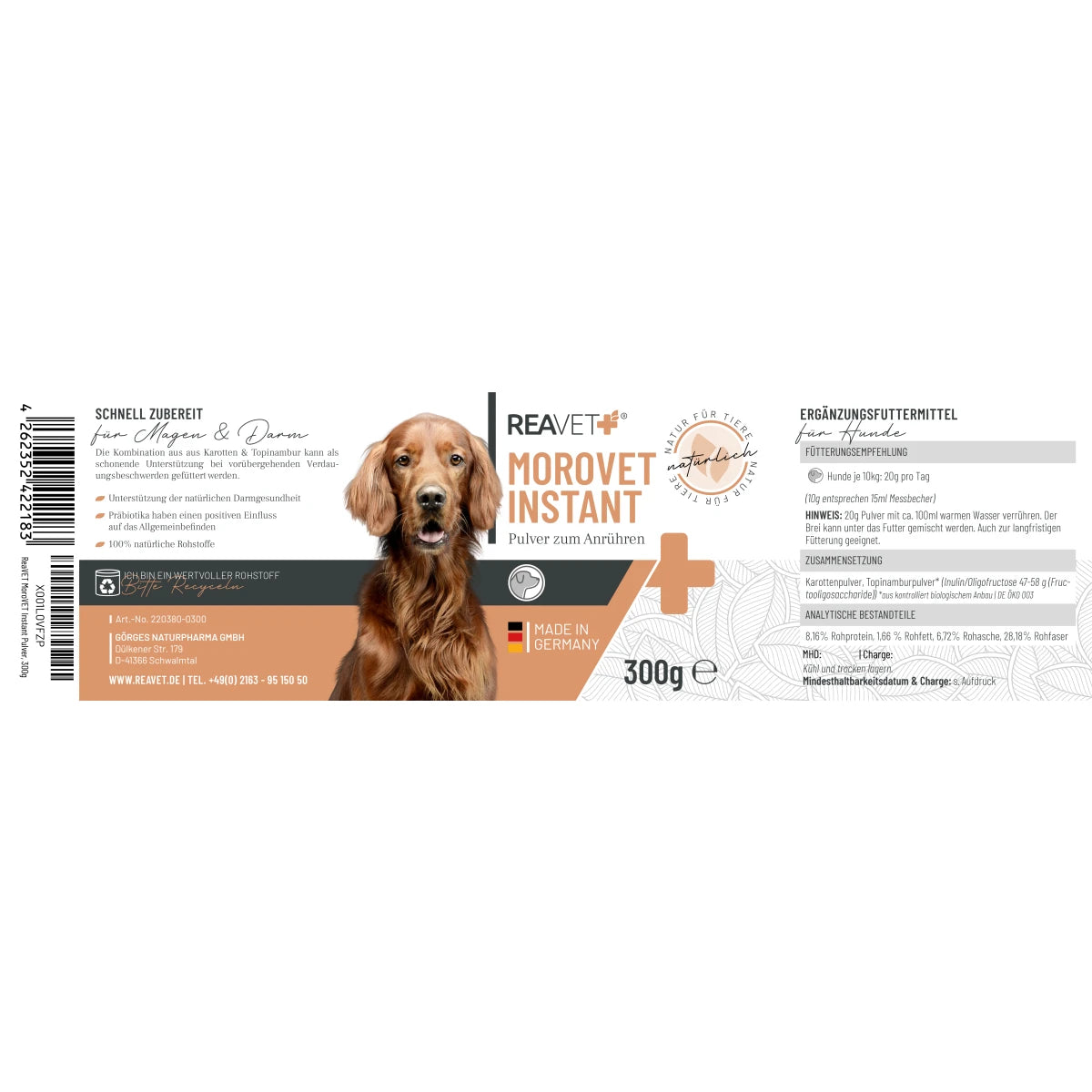 🥕 Korenje – nežno sušeno, da ohrani vse hranilne snovi. Vsebuje topne in netopne vlaknine, ki spodbujajo delovanje črevesja, vežejo tekočino in izboljšujejo kakovost blata.