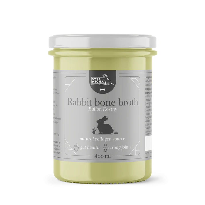 Zajčja kostna juha za pse ni le okusen obrok, temveč tudi naravni vir ključne hranilnice, ki prispeva k zdravju in vitalnosti vašega ljubljenčka. Pripravljena iz kakovostnih zajčjih kosti s počasnim kuhanjem, juha ohranja dragocene hranilne vrednosti, ki podpirajo sklepe, kosti, kožo in prebavo.